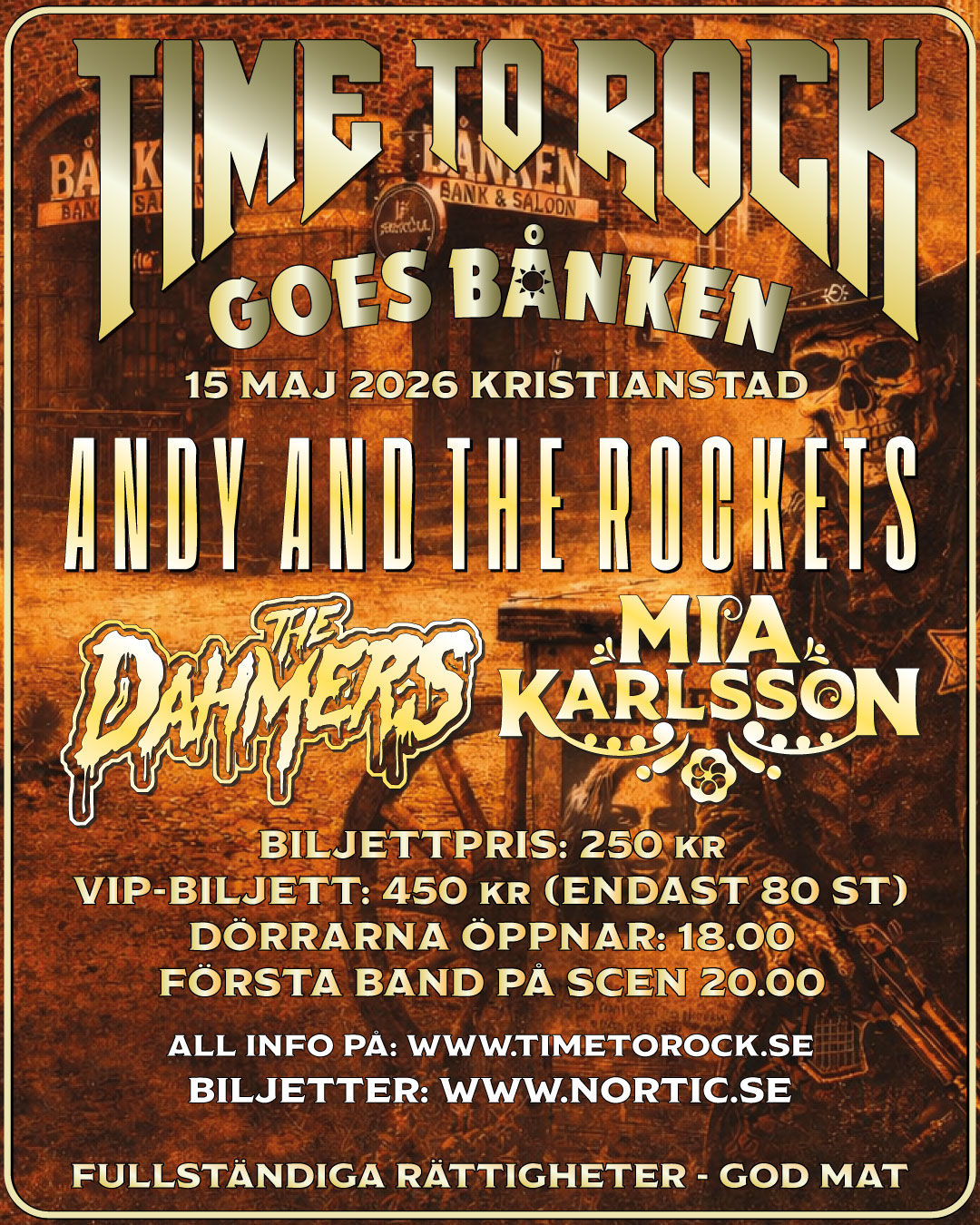 Bånken öppnar kl 18.00 den dagen och första band går på scen kl 20.00